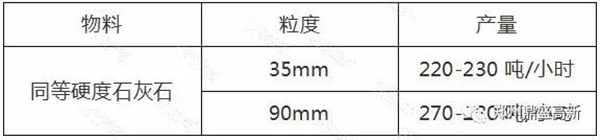 為了驗(yàn)證這一制砂原理,鄭州鼎盛公司將同等硬度的90mm和35mm的兩種石灰石骨料進(jìn)行試驗(yàn),結(jié)果如下: