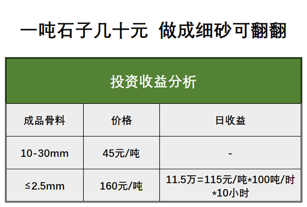 2017年初,河南省滎陽市賈峪鎮(zhèn)一采石場業(yè)主看到了當?shù)厥袌?.5mm以下細砂市場緊缺,價格一再上漲,幾乎可以到達200元/噸的市場機遇,這類細砂主要供應砂漿站,果斷決定進入該領域——以一噸45元的價格從當?shù)仄渌蠄鲑徺I10-30mm的石子,以鄭州鼎盛公司生產(chǎn)的YM預磨機為主機,對10-30mm的石子進行制砂,成品為2.5mm以下的細砂,含粉率在10%以下,噸售價在160元/噸,而且供不應求。