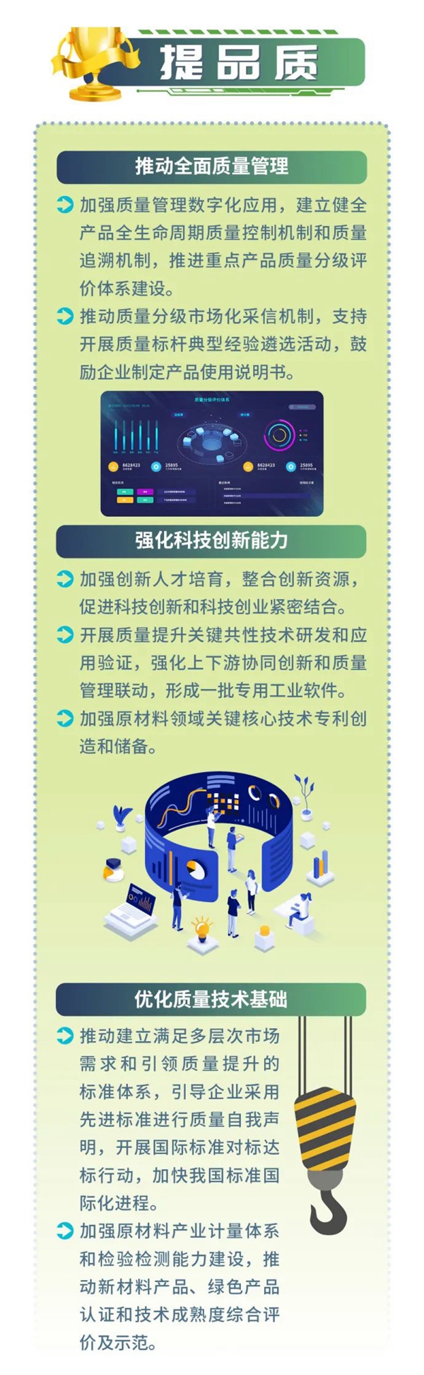 提品質(zhì)——推進(jìn)建材等行業(yè)產(chǎn)品質(zhì)量分級(jí)評(píng)價(jià)體系建設(shè),推動(dòng)建立質(zhì)量分級(jí)、應(yīng)用分類(lèi)的市場(chǎng)化采信機(jī)制。