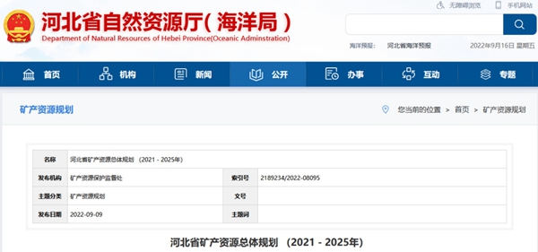 《規(guī)劃》提到,河北省是礦產(chǎn)資源大省,礦產(chǎn)資源賦存比較豐富,已發(fā)現(xiàn)各類礦產(chǎn)130種,礦產(chǎn)資源主要分布在太行山和燕山山區(qū),區(qū)域特色明顯。煤炭主要分布在唐山、邯鄲、邢臺(tái)、張家口,鐵礦主要分布在唐山、邯鄲、邢臺(tái)、承德,金、銀等貴金屬礦產(chǎn)主要分布在唐山、張家口、承德、石家莊,鉛、鋅、銅、鉬等有色金屬礦產(chǎn)主要分布在張家口、保定、承德,石灰?guī)r、白云巖等建材類非金屬礦產(chǎn)主要分布于淺山區(qū),地?zé)豳Y源主要分布在河北平原中北部。