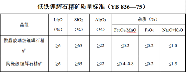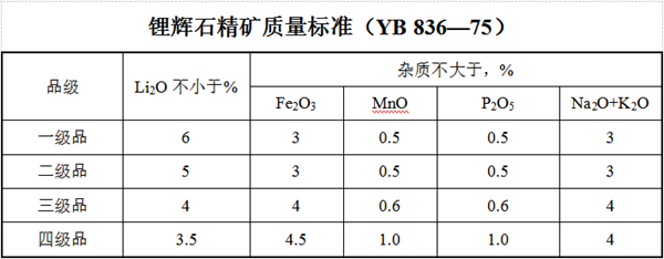 五、鋰輝石質(zhì)量標(biāo)準(zhǔn)