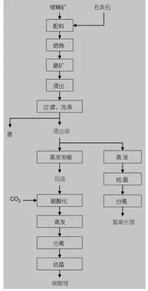 目前,自然界常見的含鋰礦石主要有:鋰輝石、鋰云母、透鋰長石、鋰瓷石等,通常采用的提取方法有石灰石法、硫酸法、硫酸鹽法、氯化物法和壓煮法等。