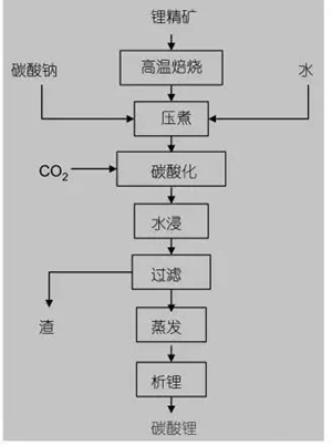 優(yōu)點(diǎn):實(shí)用性很強(qiáng),幾乎可用于所有鋰礦物,缺點(diǎn)是浸出液中鋰含量低,蒸發(fā)能耗大,鋰回收率較低。