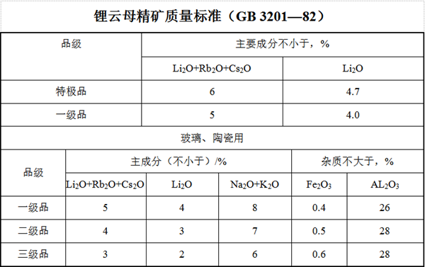 六、鋰云母精礦質(zhì)量標(biāo)準(zhǔn)