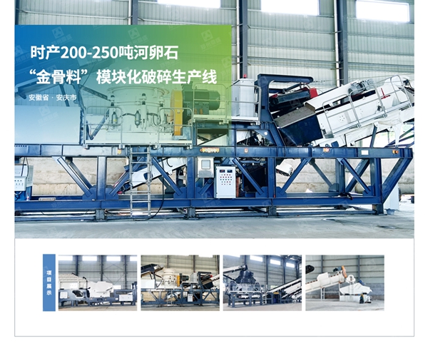 制砂模塊通常包括:給料、粗碎、中細(xì)碎、制砂、篩分幾個(gè)環(huán)節(jié),時(shí)產(chǎn)100噸生產(chǎn)線(xiàn)屬于中型砂石生產(chǎn)線(xiàn),推薦使用模塊化制砂系統(tǒng),多個(gè)設(shè)備組合在一個(gè)撬裝模塊上,并標(biāo)配有皮帶機(jī)、連接件等多個(gè)功能組成的單元,如“喂料 顎破/反擊破”的粗碎模塊、“反擊破/圓錐破 篩分”的中細(xì)碎模塊、“制砂 篩分”的制砂模塊、“振動(dòng)篩 皮帶機(jī)”的篩分分級(jí)模塊。