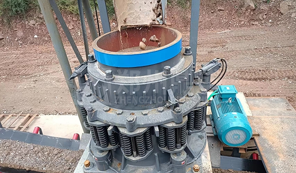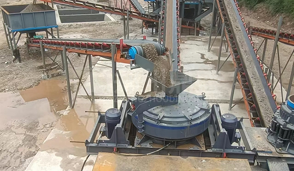 2、粗破后的物料由膠帶輸送機(jī)送入到制砂機(jī)進(jìn)行進(jìn)一步破碎;