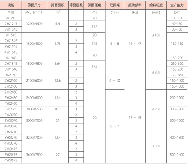 YK圓振動篩介紹:YK圓振動篩為圓形軌跡運動,是一種多層數(shù),新型高效振動篩。是專門為采石場篩分料石設(shè)計的,也可供選煤、選礦、建材、電力及化工部門等作產(chǎn)品分級用,YK(F)系列為國內(nèi)新型機種,該機采用塊偏心激振器及輪胎聯(lián)軸器,具有結(jié)構(gòu)先進、激振力強、振動噪音小、易于維修、堅固耐用等特點。