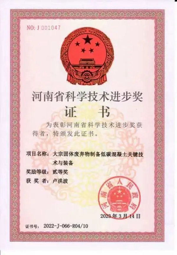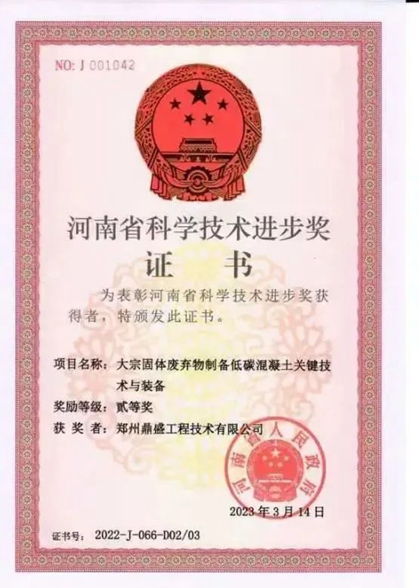 3月24日,河南省人民政府發(fā)布《關(guān)于2022年度河南省科學(xué)技術(shù)獎(jiǎng)勵(lì)的決定》。根據(jù)《河南省科學(xué)技術(shù)獎(jiǎng)勵(lì)辦法》(省政府令第57號)規(guī)定,經(jīng)省政府常務(wù)會議審議,特別對2022年度河南省科學(xué)技術(shù)杰出貢獻(xiàn)獎(jiǎng)、河南省自然科學(xué)獎(jiǎng)、河南省技術(shù)發(fā)明獎(jiǎng)、河南省科學(xué)技術(shù)進(jìn)步獎(jiǎng)等進(jìn)行表彰獎(jiǎng)勵(lì)。其中由鄭州鼎盛聯(lián)合華北水利水電大學(xué)、中建七局第四建筑有限公司共同完成的“大宗固體廢棄物制備低碳混凝土關(guān)鍵技術(shù)與裝備”項(xiàng)目,喜獲河南省科學(xué)技術(shù)進(jìn)步二等獎(jiǎng),填補(bǔ)了鄭州鼎盛在該領(lǐng)域內(nèi)的空白,為公司在技術(shù)創(chuàng)新領(lǐng)域開創(chuàng)新局面。