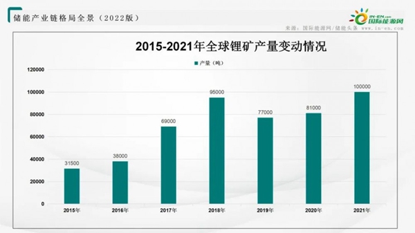 從供應(yīng)量上看,2021年全球鋰礦石產(chǎn)量約為10萬(wàn)噸(不包括美國(guó)),較2020年的8.25萬(wàn)噸增長(zhǎng)21%。2021年全球鋰資源消費(fèi)量估計(jì)為9.3萬(wàn)噸,較2020年的7萬(wàn)噸增長(zhǎng)33%。