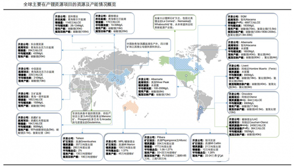 鹽湖項(xiàng)目分布較為集中,主要在中國(guó)和南美的“鋰三角”地區(qū)。項(xiàng)目繁多,但資源稟賦優(yōu)異的很少。