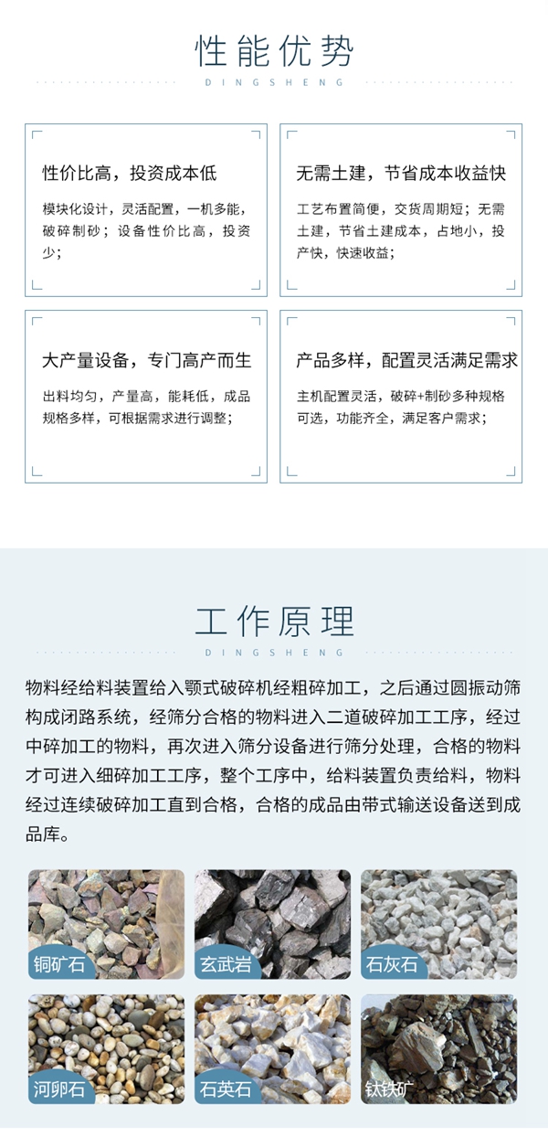 與傳統(tǒng)固定式生產(chǎn)線的安裝方式相比,撬裝式模塊化設(shè)備減少占地,減少土建成本,現(xiàn)場安裝工作量少、安裝周期短,可快速投產(chǎn),具有性價比高、模塊化設(shè)計、無需土建、配置靈活等顯著優(yōu)勢,廣泛應(yīng)用于花崗巖、河卵石、石灰石等各種礦石破碎,建筑垃圾再生利用,鐵路,高速公路,能源,水泥,化工,建筑等行業(yè)。