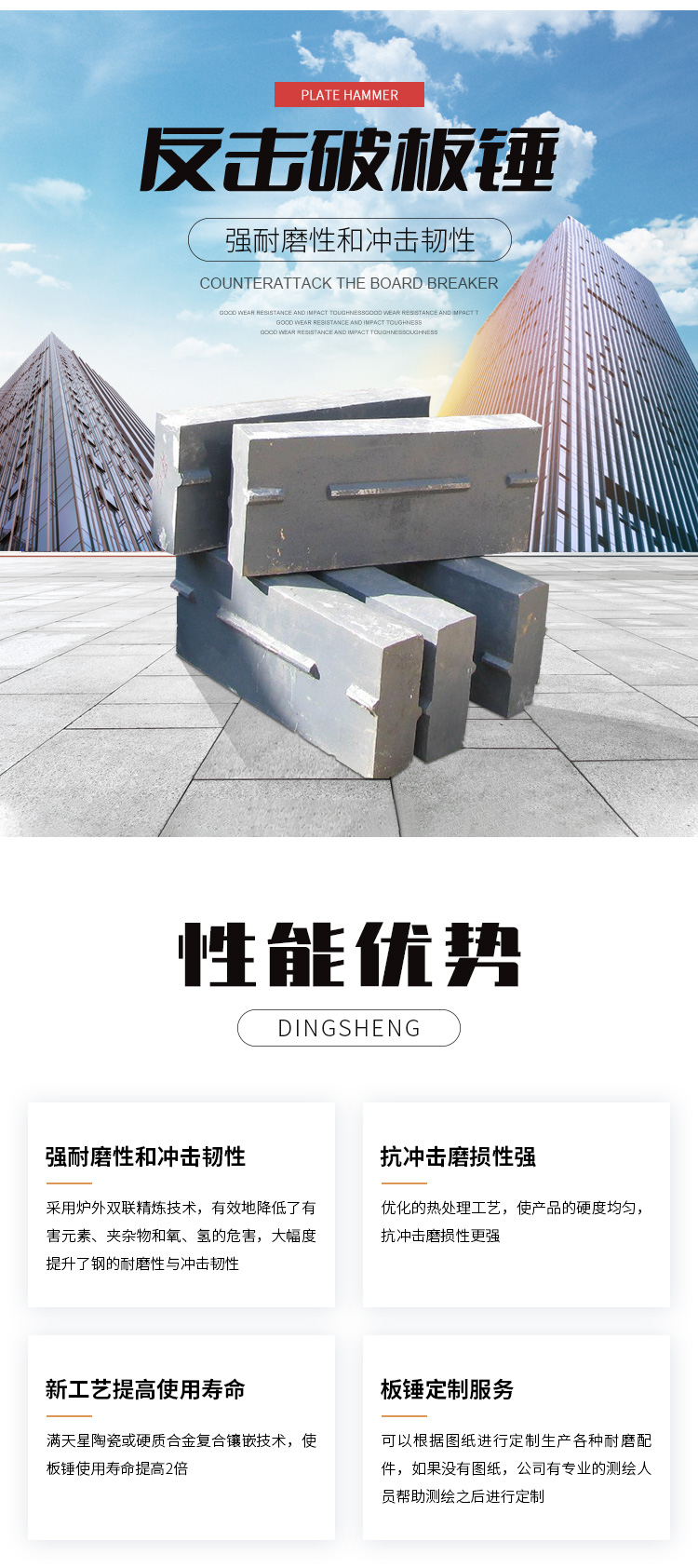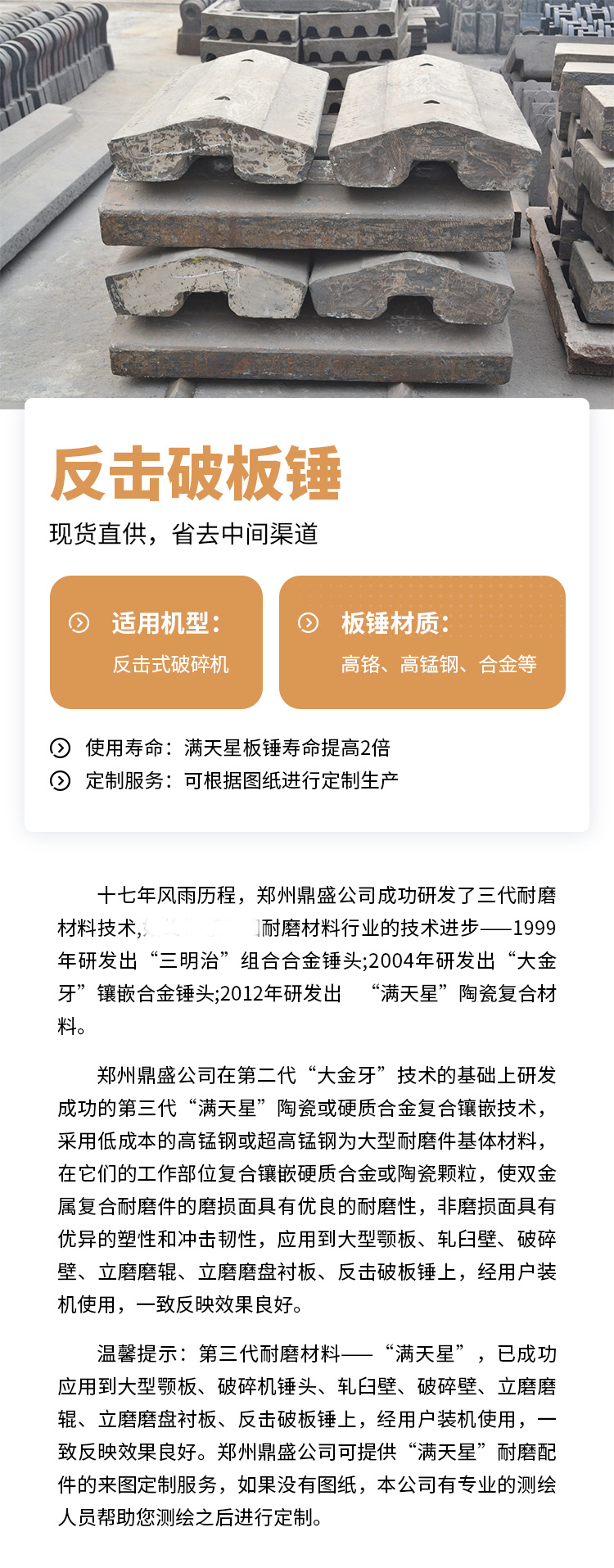 板錘材質(zhì):高鉻、高錳鋼、合金等