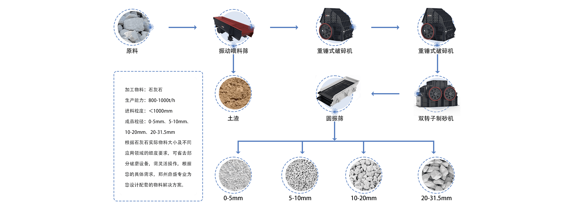 石灰石生產線工作流程示意圖